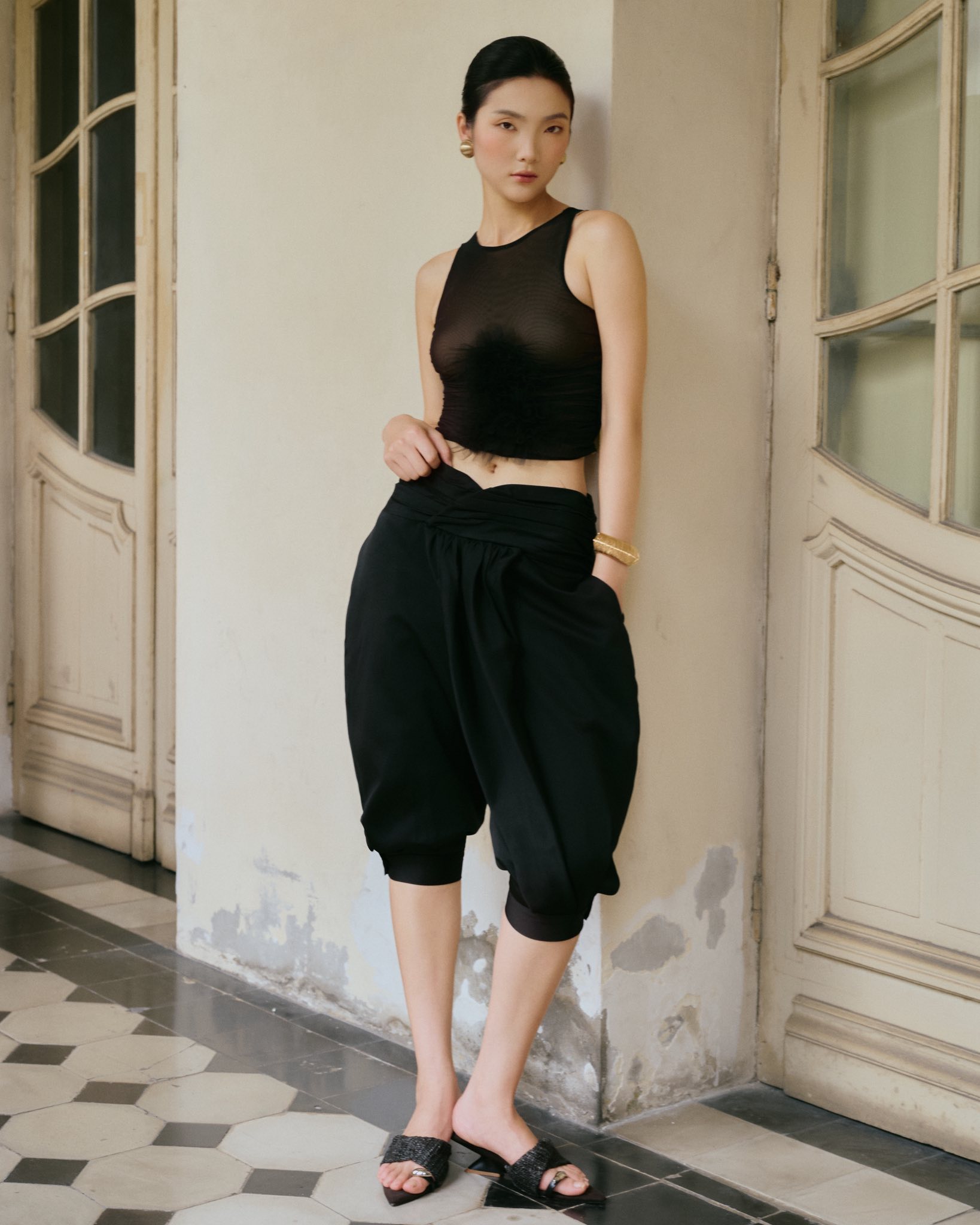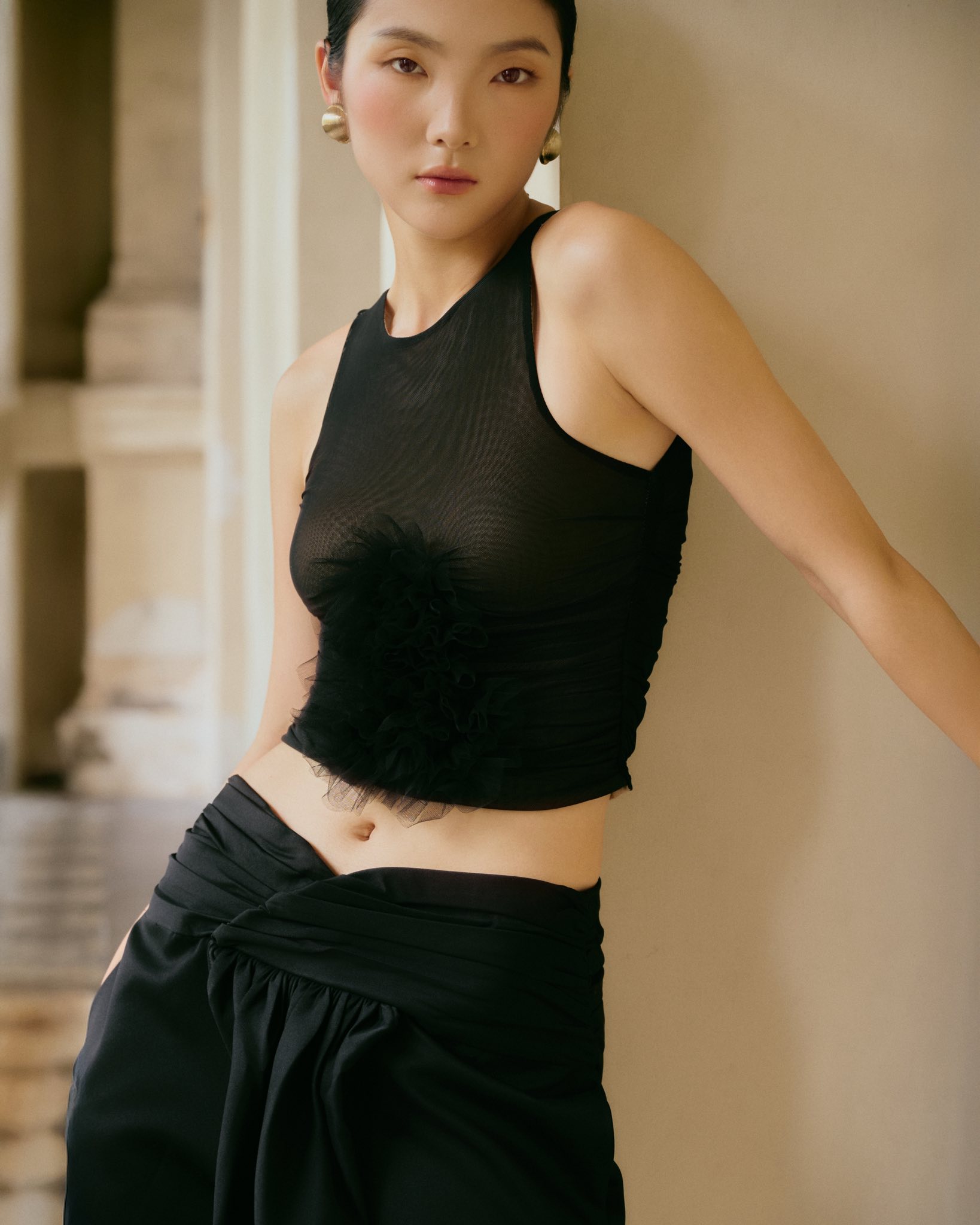 BLACK ROSE TOP được thiết kế từ chất liệu Lưới thun. Cùng với ALI SHORT được thiết kế từ chất liệu Phi Nhật.