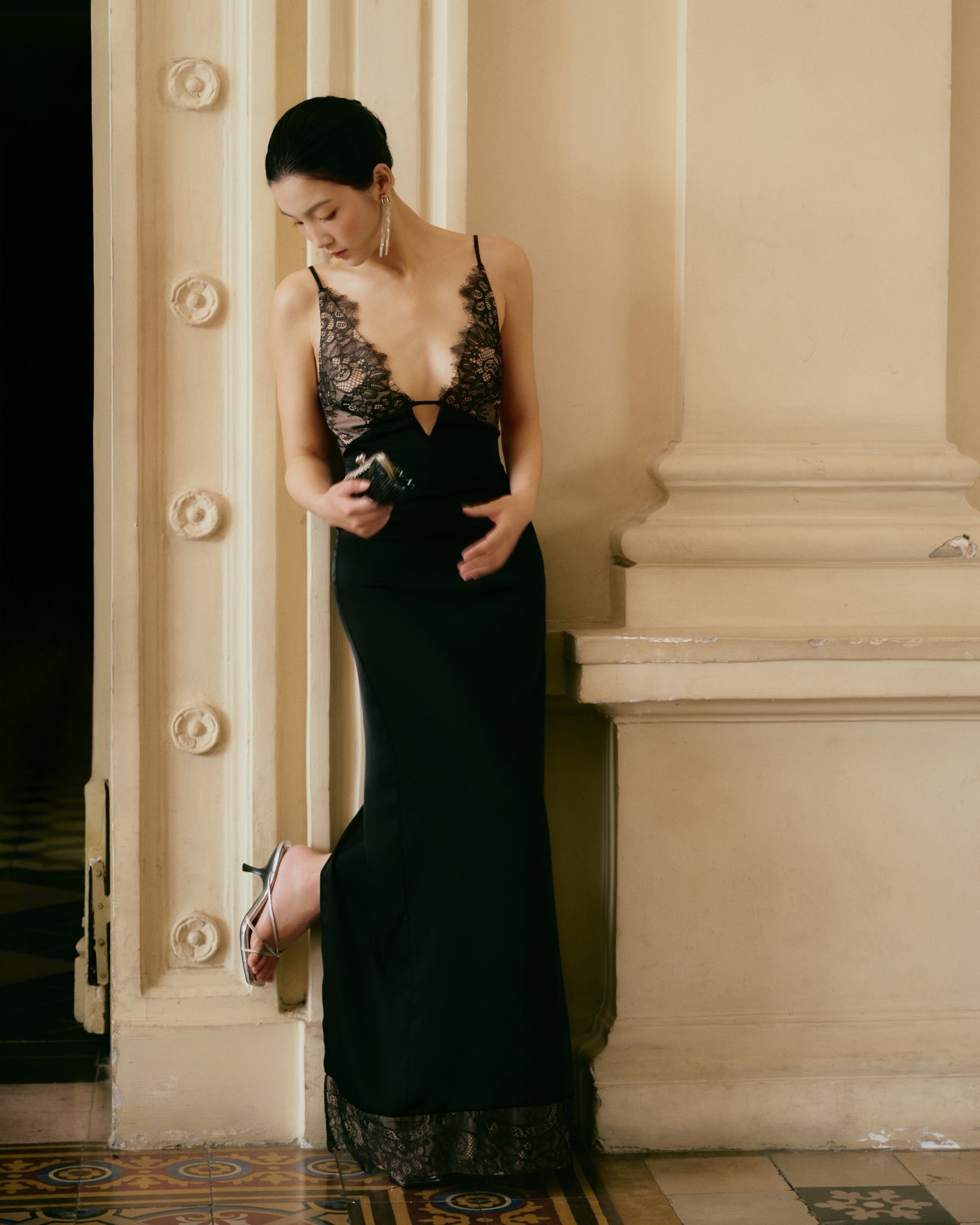 CARLYN DRESS được thiết kế từ chất liệu Lụa trượt Hồng Kông.